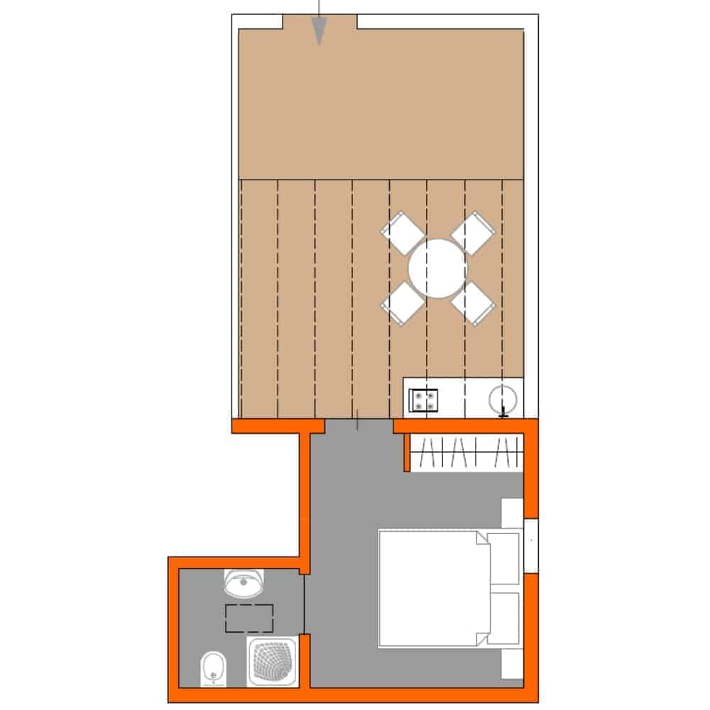 No. Questa tipologia può ospitare al massimo 2 persone. La tipologia ideale per voi è il Bungalow Monolocale 2 posti +1.